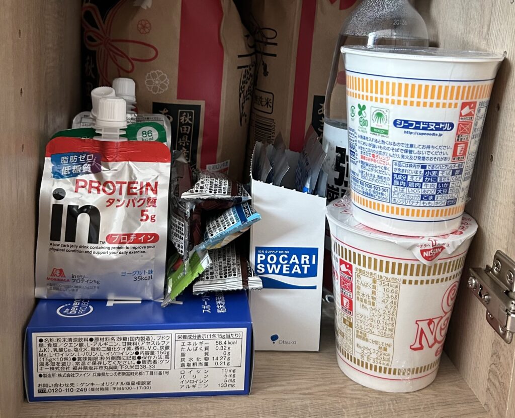 お湯が確保できれば温かく食べられますが、水を注ぐだけでもそのまま食べられるものを中心に確保しています。